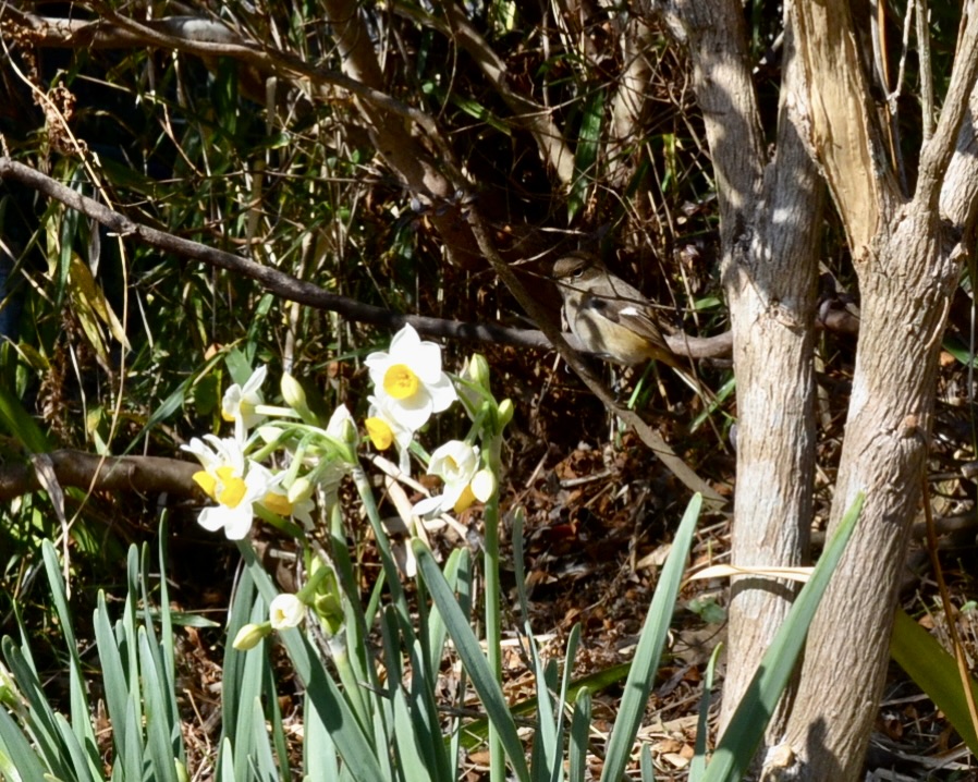 日本水仙咲く頃、訪れるジョウビタキ
